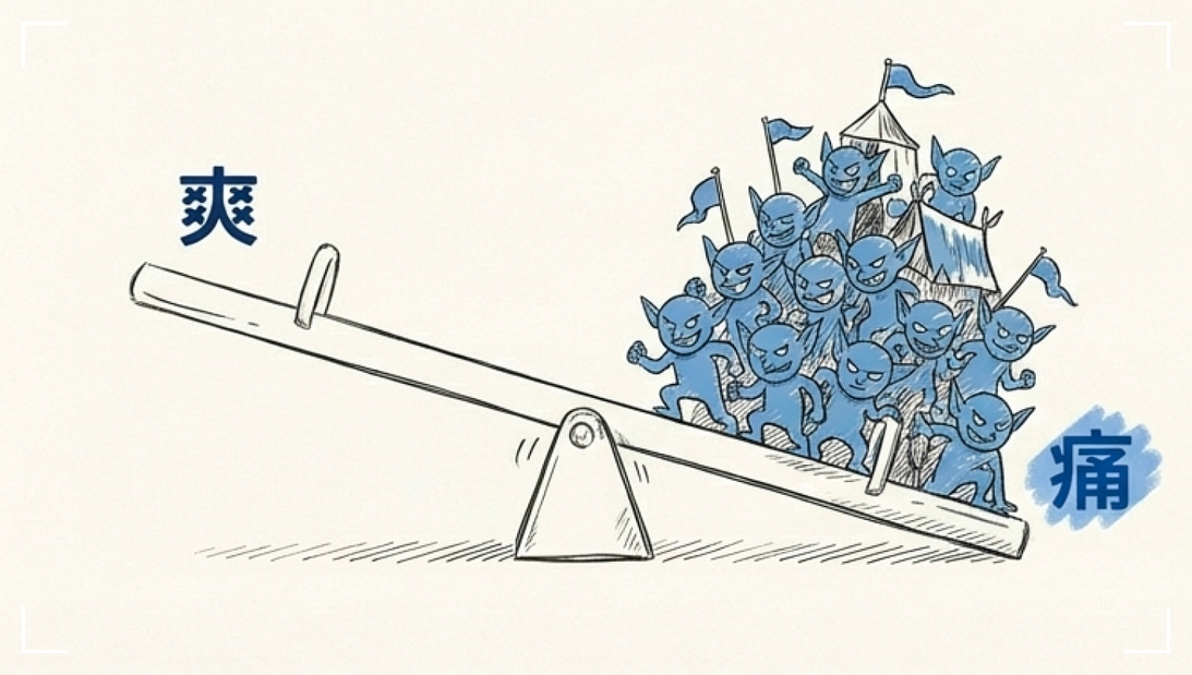 這種由痛苦觸發的快樂,與滑手機帶來的廉價多巴胺不同。它更持久、更穩定,且不會產生耐受性或成癮後的空虛感。